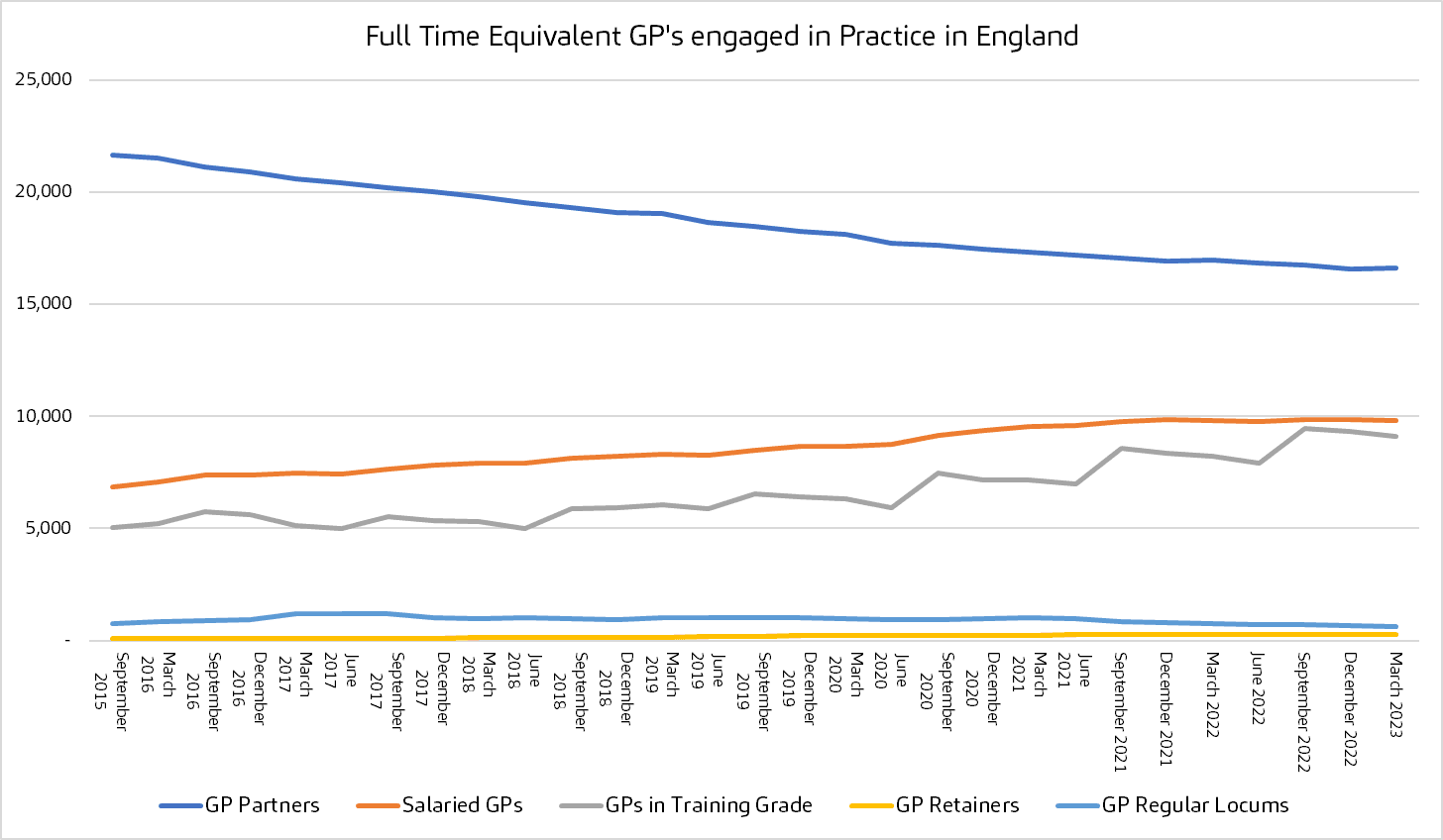 With fewer new GPs seeking partnership roles, coupled with the general decline in GPs per the above is stressing the partnership model. Exploring all options to protect the business is becoming more and more important